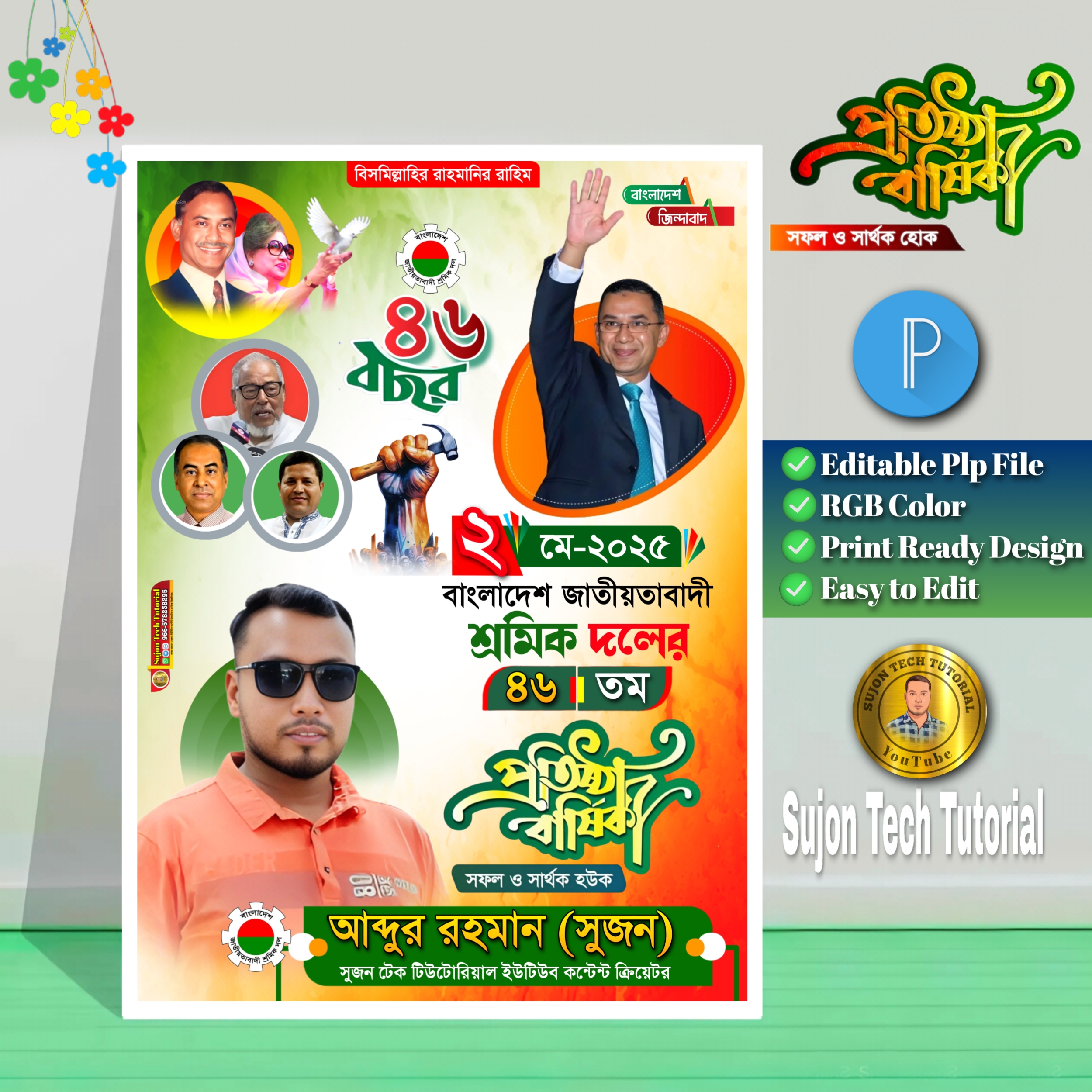 শ্রমিক দলের এর প্রতিষ্ঠা বার্ষিকী পোস্টার ডিজাইন | bnp 100.00৳