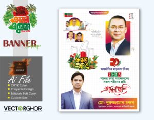 এই ডিজাইনটি “দুর্গা পূজার ব্যানার ডিজাইন। Durga Puja Banner Design” করা হয়েছে গ্রাফিক্স ডিজাইনের সবছেয়ে জনপ্রিয় মাধ্যম এডবি ইলাস্টেটর দিয়ে। এই ডিজাইনটি আপনি খুব সহজে ব্যবহার করতে পারবেন। এই ডিজাইনটি সহজে ইডিট করা যাবে এবং কাস্টমাইজ প্রিন্ট রেডি ফাইল।